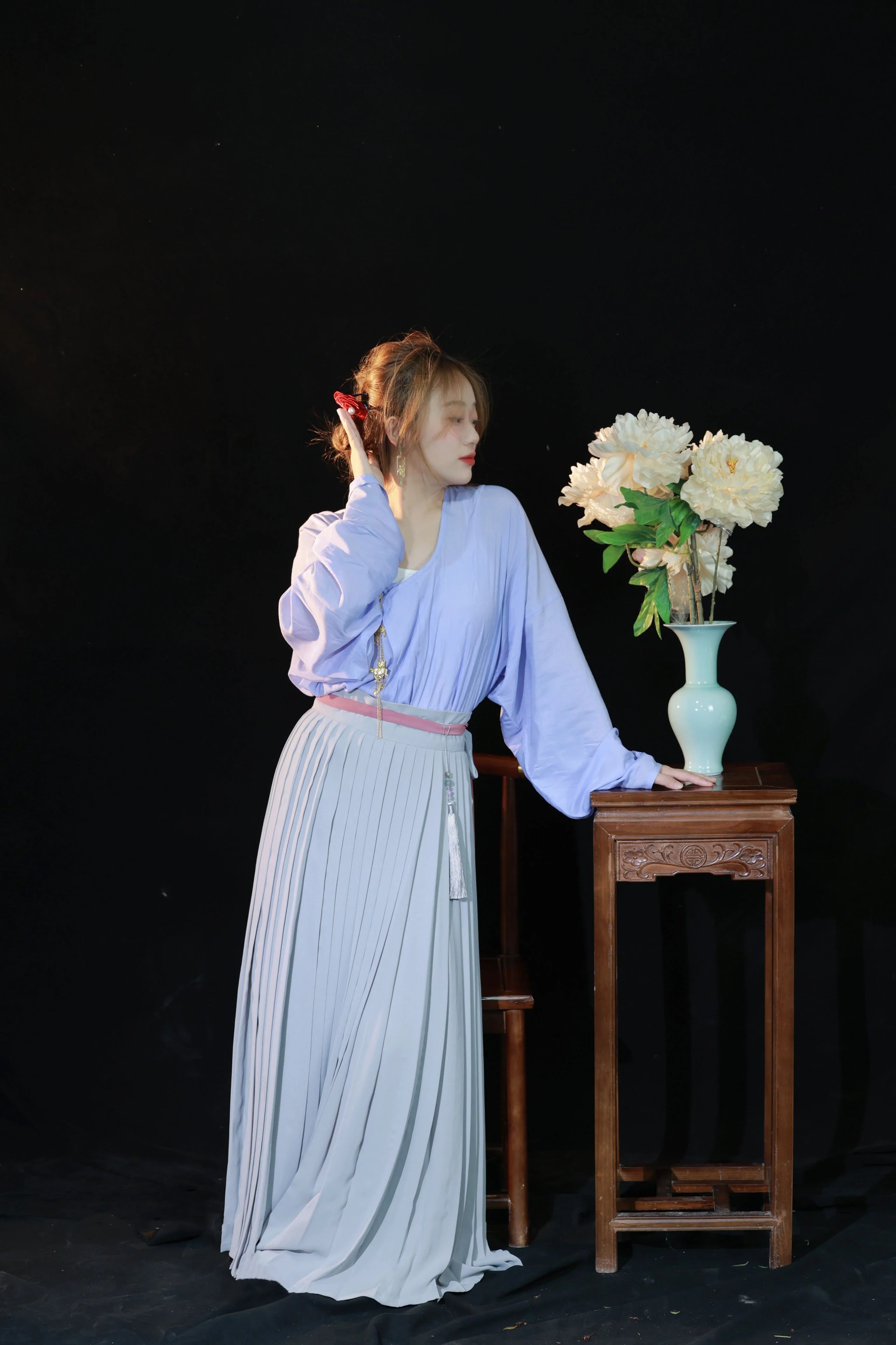 Le Baidiequn百迭裙, ou « jupe à cent plis » est un seul panneau de tissu avec de nombreux plis cousus sur une seule ceinture. Cet effet de plis accordéon est extrêmement hypnotisant et magnifique ✨