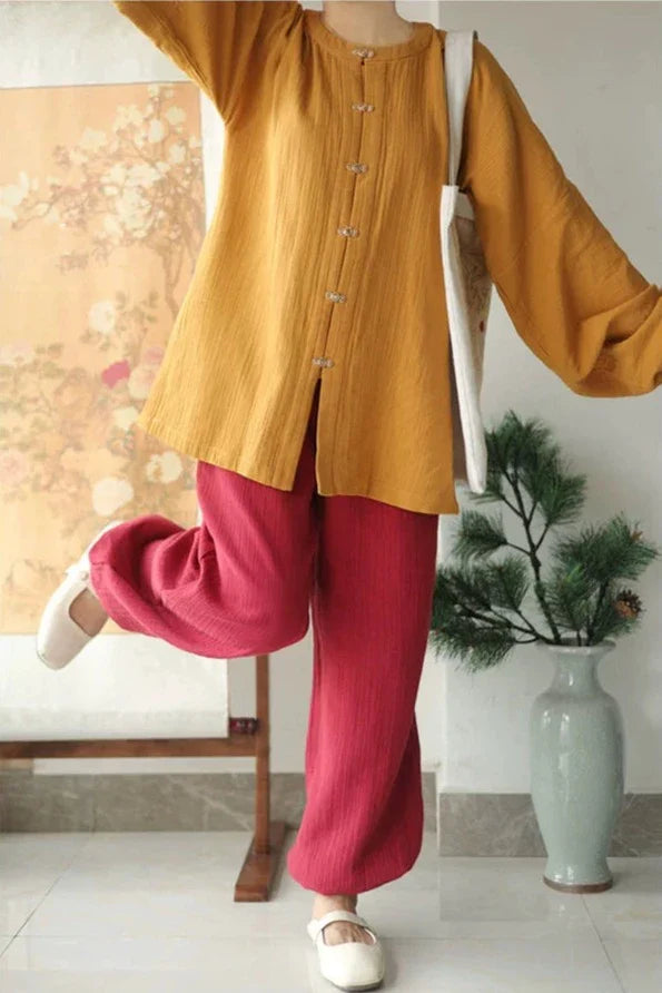 En complément du haut, le Denlong Ku 灯笼裤 (pantalon lanterne Tang) est disponible en deux choix de tissus pour répondre à vos besoins saisonniers :