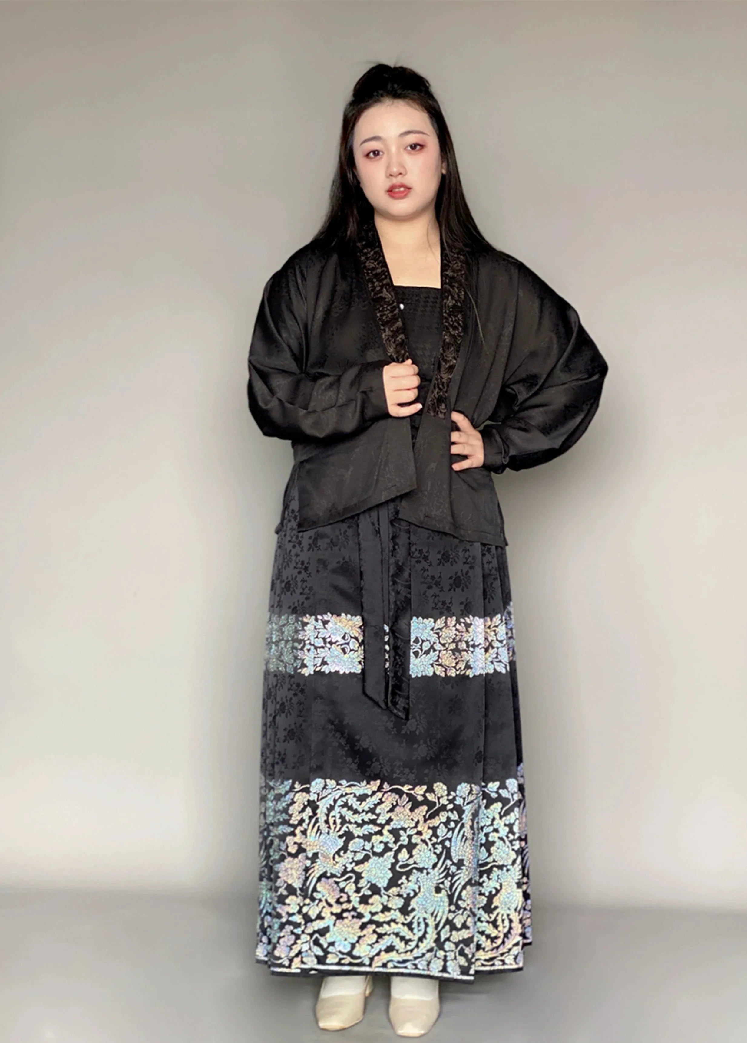 Reproduisant le travail complexe des meubles en nacre, cette jupe Mamian irisée 马面裙 est un véritable incontournable.