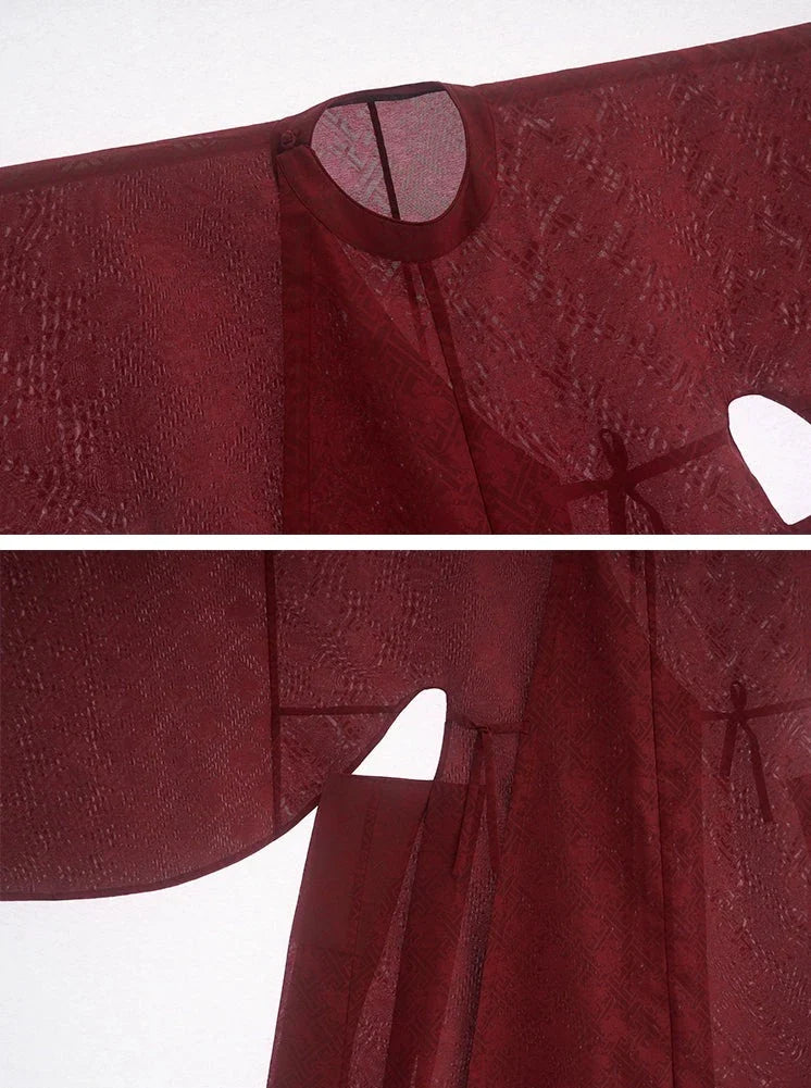 Semi-transparent, un haut et un pantalon à col croisé ou un sous-vêtement Zhongyi 中衣 sont recommandés.