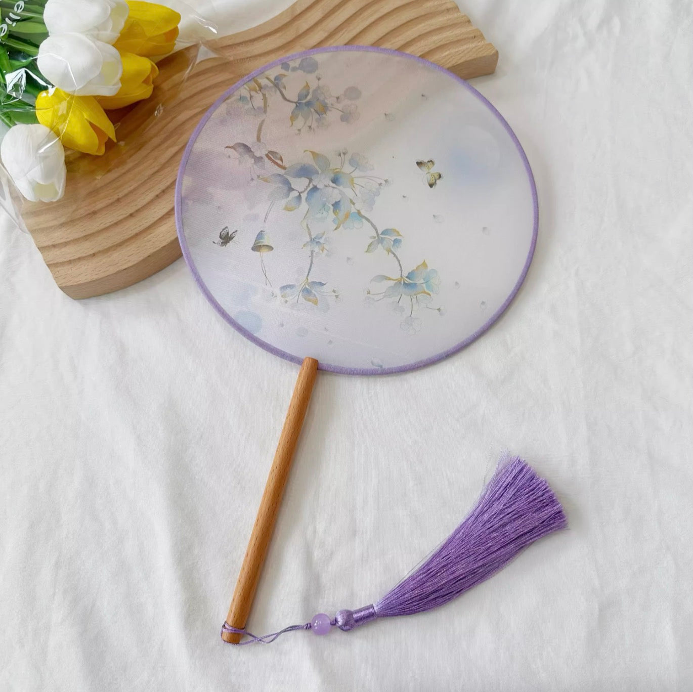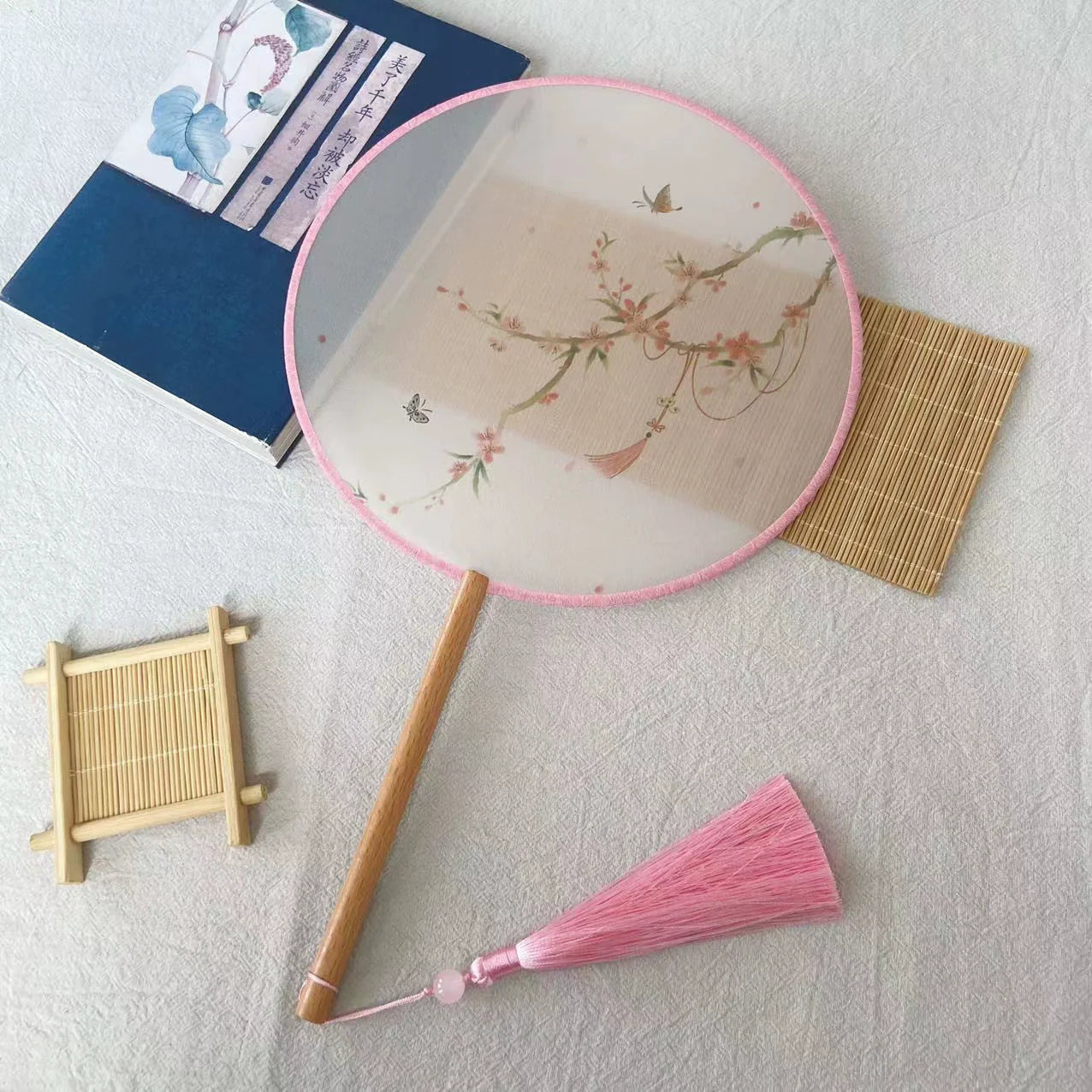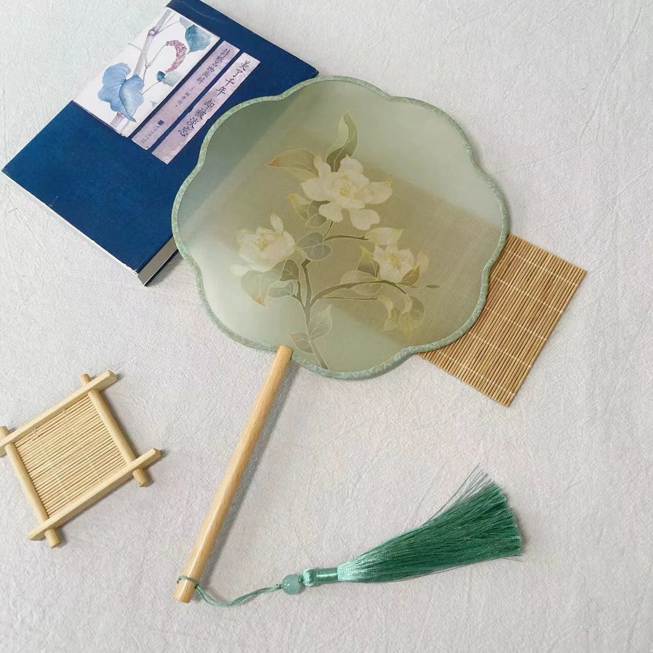 Éventail rond Tuanshan à imprimé floral en soie translucide Shanzi 扇子