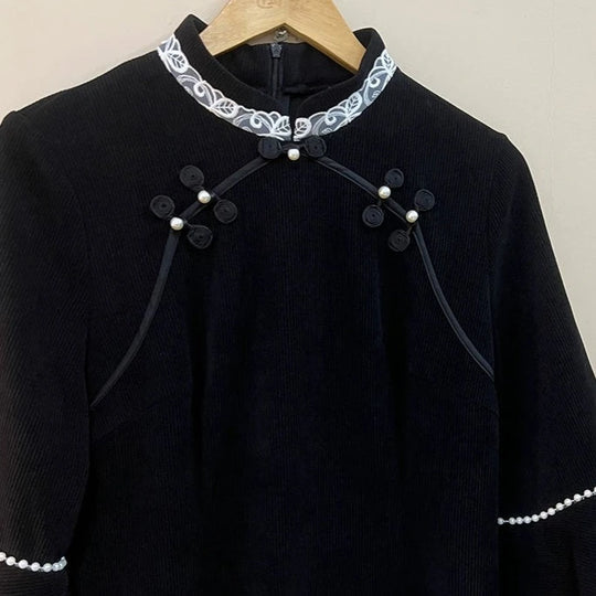 Durable fabric akin to light corduroy, this qipao won't snag as easily as silk options, making it a perfect option for daily wear.