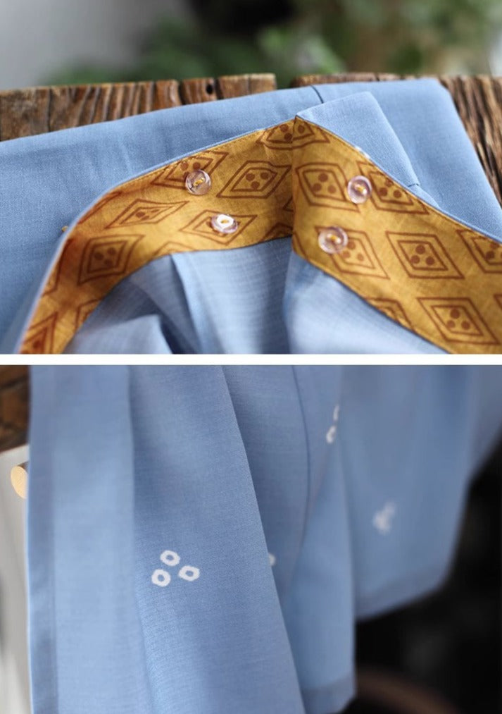 Пожалуйста, стирайте вручную осторожно, чтобы не испортить вышивку, украшения или пуговицы. Пожалуйста, сушите одежду на вешалке. Ручная стирка и сушка на воздухе также продлевают срок службы ханьфу. Для глажки используйте самую низкую температуру или распаривайте складки.